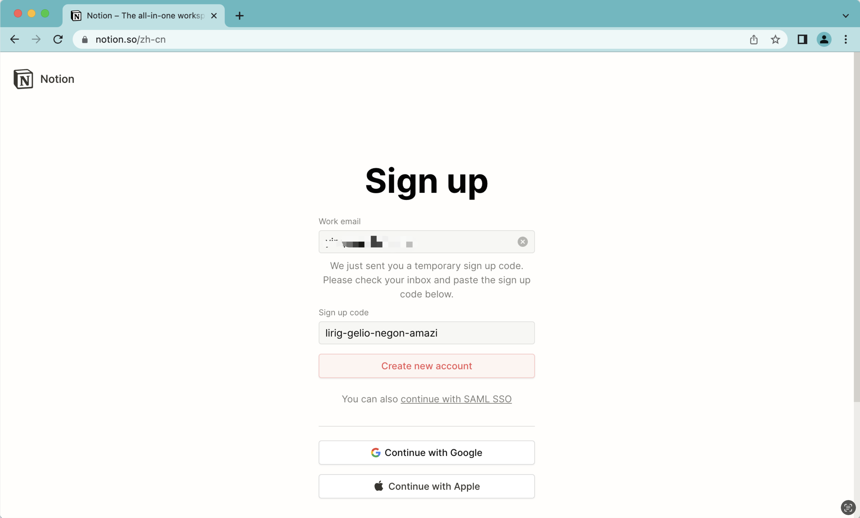 点击notion注册登录地址打开注册登录页面,输入邮箱和邮箱验证码进行登录。